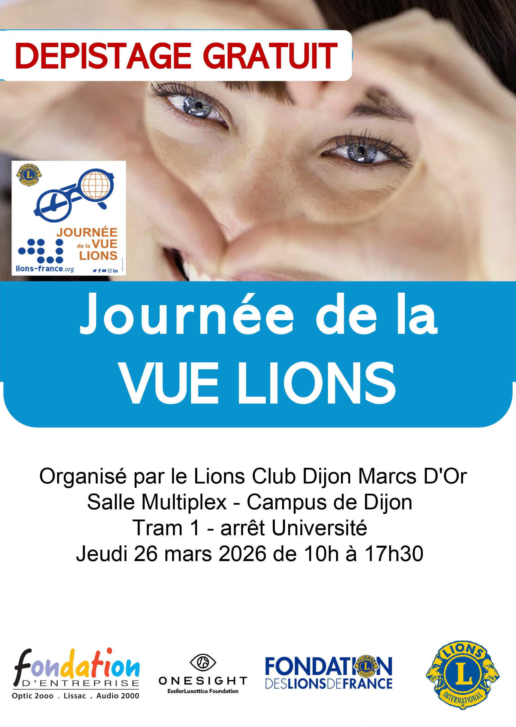 Dans le cadre de cette action, le Lions Club Dijon Marcs d’OR propose une journée d’information et contrôle gratuit de la vue, à l’intention principalement des étudiants du Campus de Dijon :